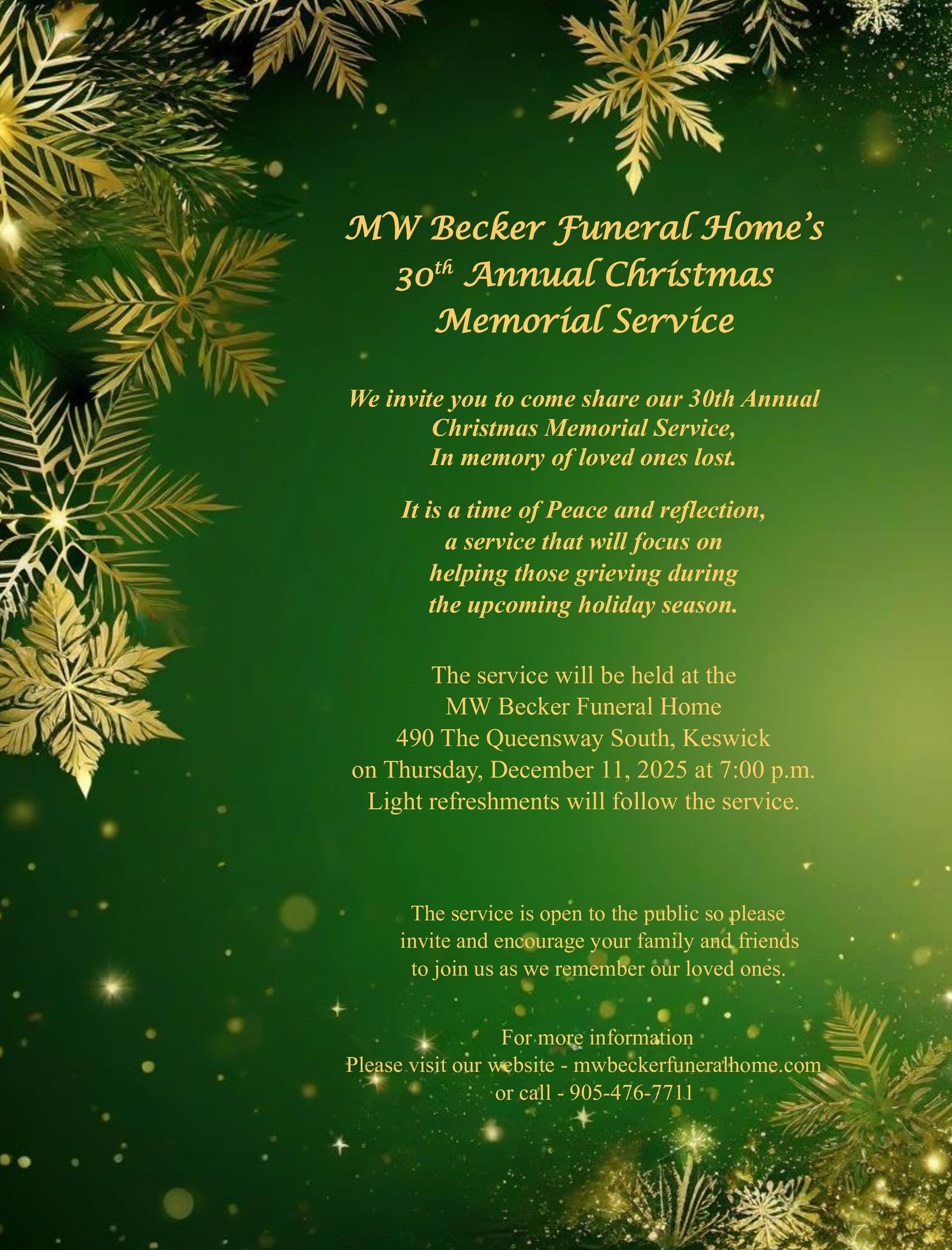 If you have any questions and would like to speak directly with a Funeral Director, please call us at 905-476-7711 or email us at wecare@beckerfh.ca